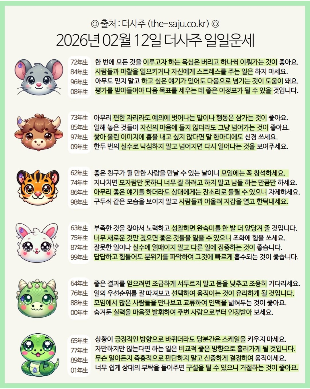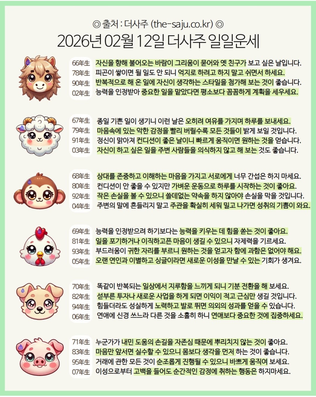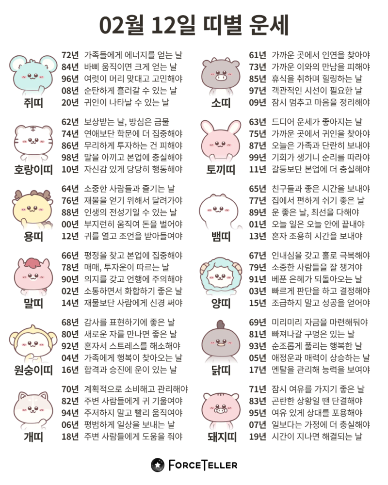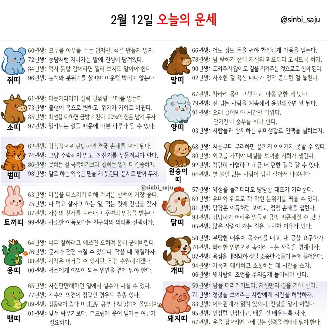 #2026년 병오년(丙午年)2월12일. 더사주.별자리.일일운세.띠별운세
