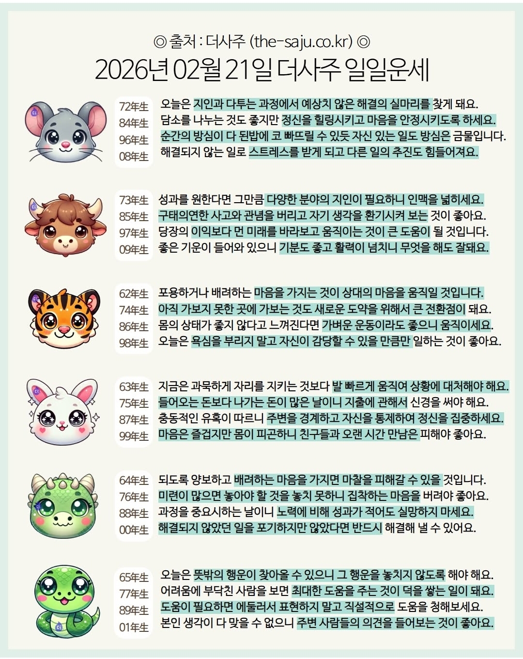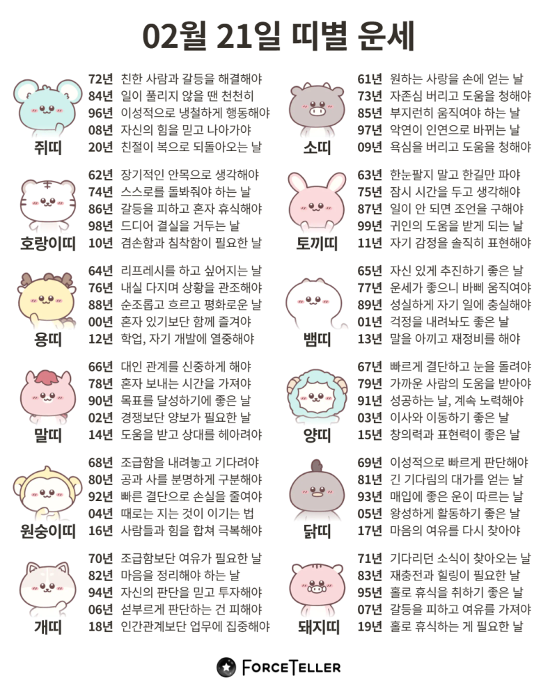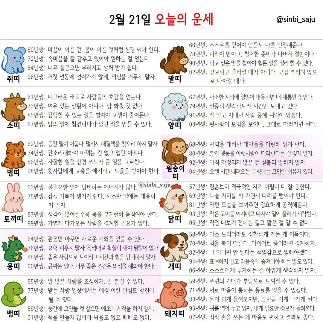 #2026년 병오년(丙午年)2월21일. 더사주.별자리.일일운세.띠별운세