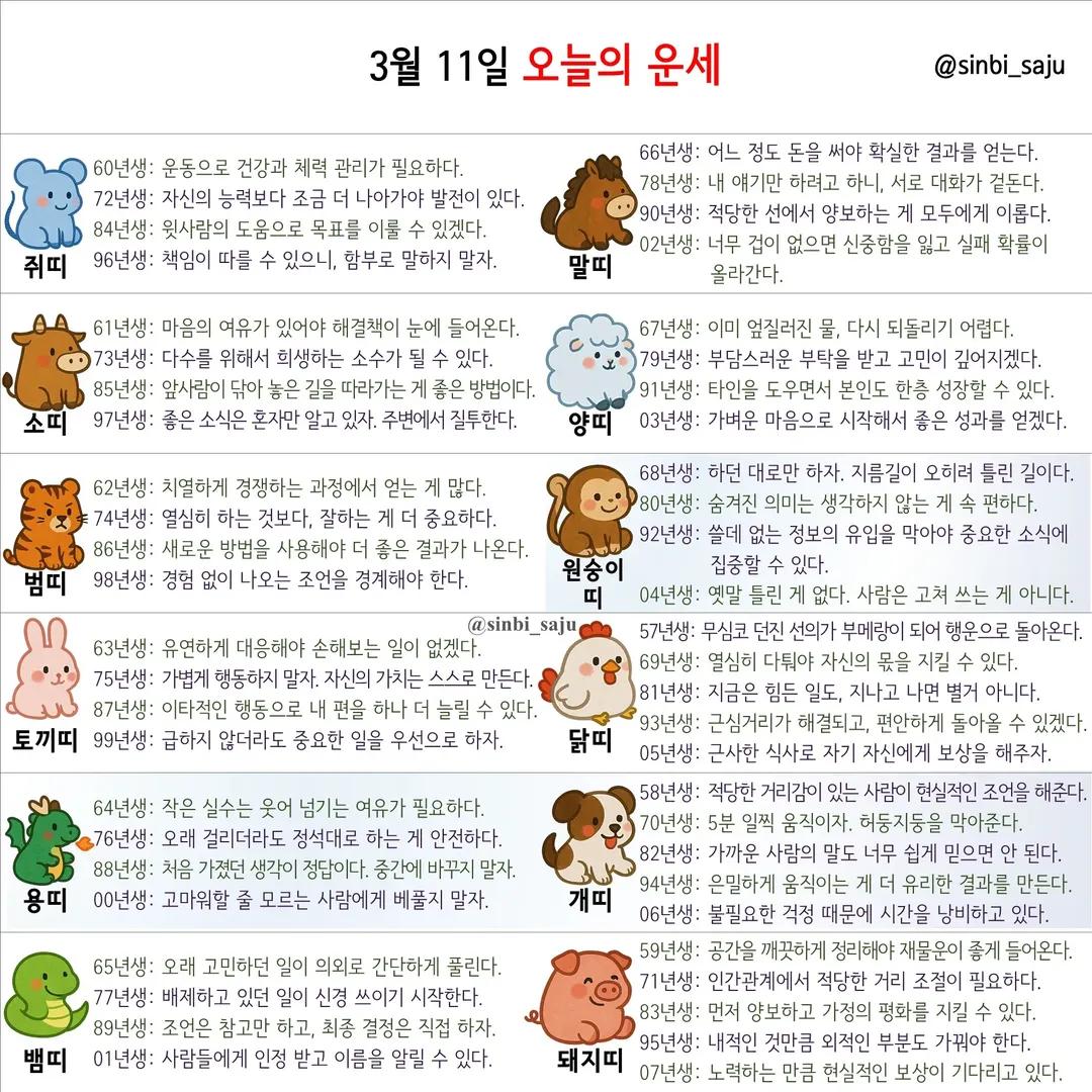 #2026년 병오년(丙午年)3월11일. 더사주.별자리.일일운세.띠별운세