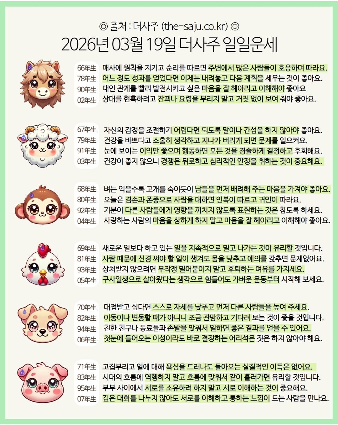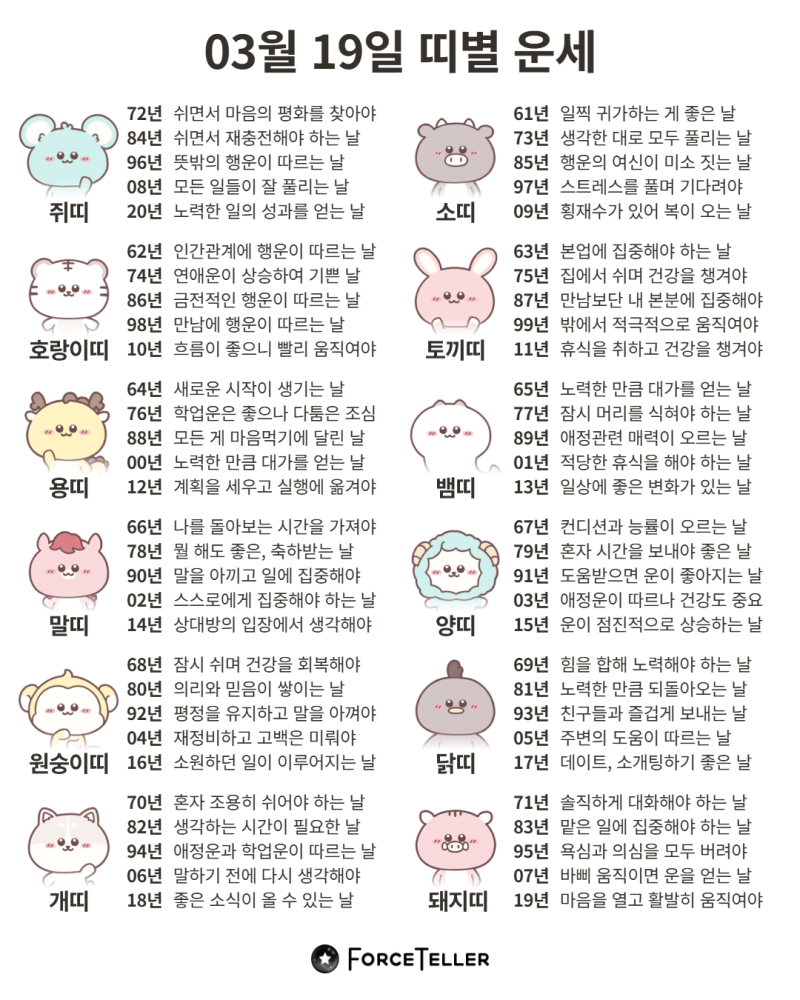 #2026년 병오년(丙午年)3월19일. 더사주.별자리.일일운세.띠별운세